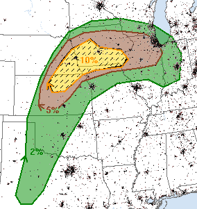 There is a serious risk of violent tornadoes in the hatched area today. I would also suggest extra caution in the Kansas portion of the 5% area.